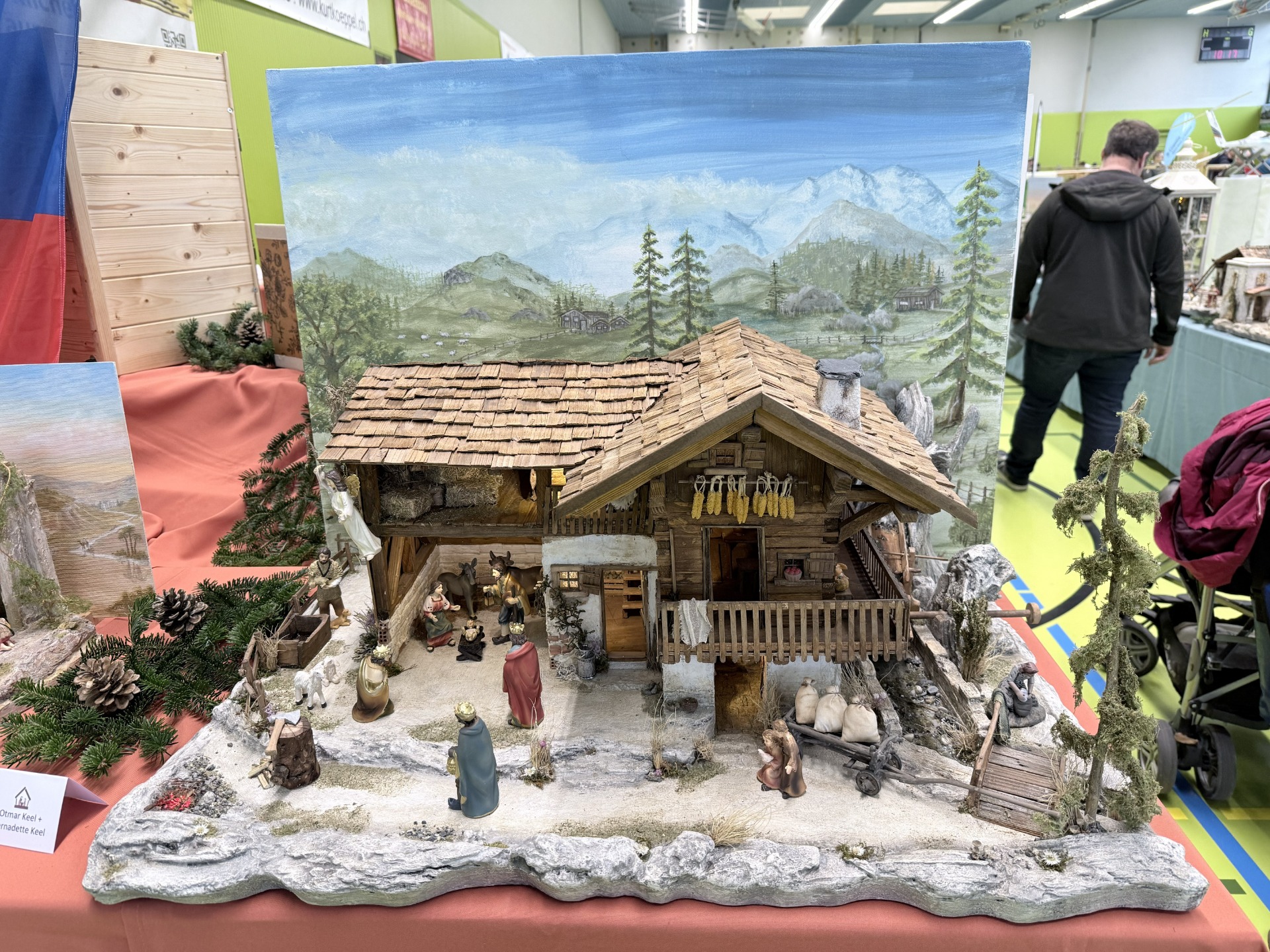 In den Alpenländern haben Schnitzer und Künstler die Szene häufig an ihre Heimat angepasst. Diese Krippen zeigen rustikale Hütten, verschneite Landschaften und Figuren in alpenländischer Tracht.